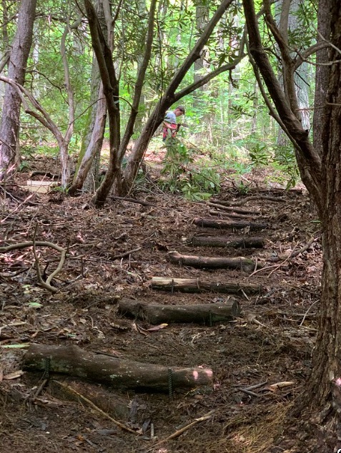 The trail had taken a beating since we first carved it into the woods the summer before last. It was high time for a refresh. Early this month, six great teenagers spent two days doing some much needed maintenance of the loop trail, and they had enough time left over to began expanding the little trail network. Many thanks to Alex, Cameron, Rhea, Samuel, Townsend, and Liam! Not only were they were entirely self-organized and self-directed, but everyone survived and their work is outstanding!