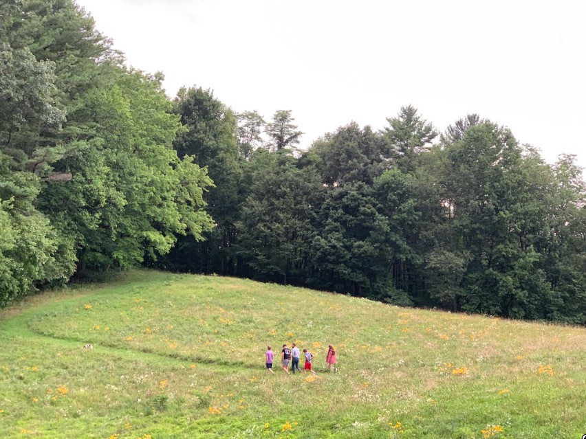 Big Ridge Mountain Club sits on 14 acres. About half of that is all the pasture you see from the road and the other half is the woods that extend down the hill from the pasture. This summer, we’ve been mowing walking paths through the pasture and around the pasture’s perimeter, and last week, we completed some upgrades and expansions to the trail loop through the woods.